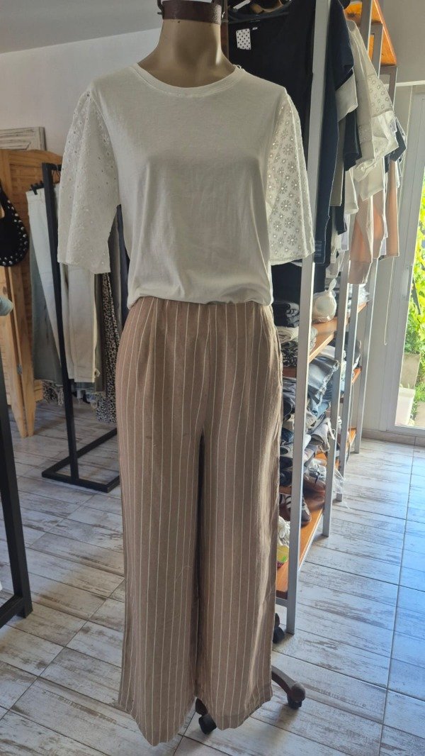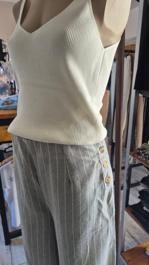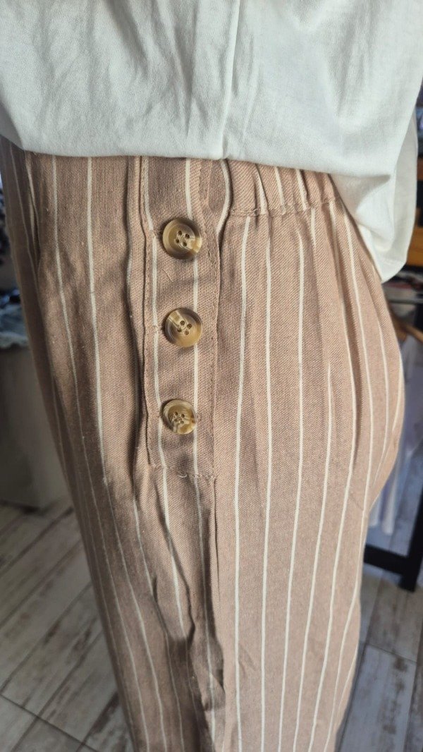 Pantalón rayado cintura elastica en la parte de atrás y botones al costado