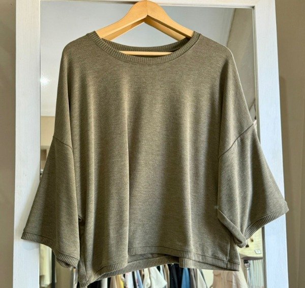 Sweater de verano finito mangas al codo. Combinado con puños y cullo de Morley. Talle único.