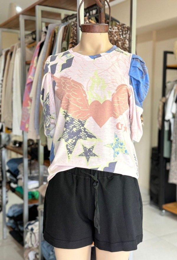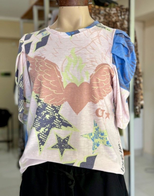 Remera de algodón con estampa. Manga Princesa,Talle único.