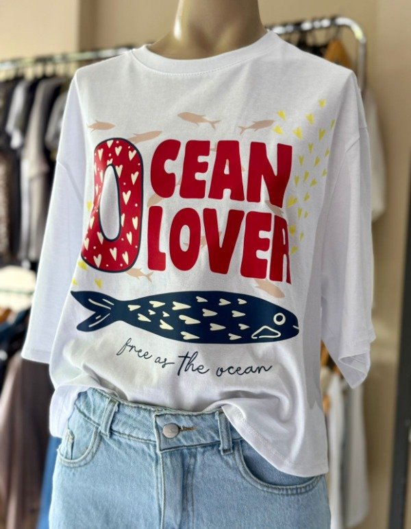 Remera de algodón con estampa. Talle único. Tipo Oversize corta